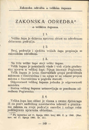 Zakonska odredba o velikim župama, 17. VI 1941. |