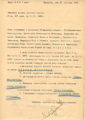 | Okružnica o zvaničnim nazivima upravnih oblasti, 18. I 1923. |