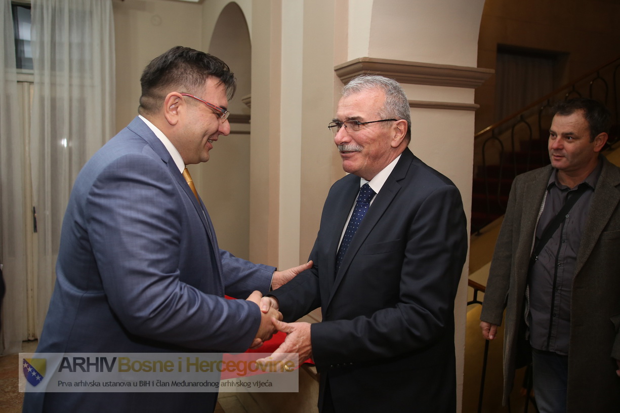 12.12.2016. - Povodom 69.godina postojanja Arhiva Bosne i Hercegovine i arhivske službe u BiH, večeras je u Domu Oružanih snaga u Sarajevu upriličena svečana Akademija kojoj su prisustvovali brojni predstavnici kulturnog, vjerskog i političkog života BiH, predsjedavajući Predsjedništva BiH Mladen Ivanić, ministar vanjske trgovine i ekonomskih odnosa BiH Mirko Šarović, zamjenica Predsjedavajućeg Predstavničkog doma BiH Borjana Krišto, predstavnici Predstavničkog doma BiH, diplomatskog kora u BiH, visoki predstavnik za BiH Valentin Inzko, direktori arhiva iz Hrvatske, Crne Gore i Slovenije. Uz dobrodošlicu gostima i čestitkama arhivskim radnicima, direktor Arhiva BiH Saša Klepić je ukazao na značaj koji ova institucija ima u očuvanju kulturno-historijske baštine naroda BiH. Istakao je da je u vrijeme visoke tehnologije moguće osavremeniti rad i biti na usluzi srodnim institucijama u BiH, ali i inostranstvu, te da je digitalizacija arhivske građe projekt koji se provodi svugdje u svijetu, te da se i arhivi u BiH moraju uklopiti u savremeno poslovanje. - Pokazalo se da nam je mikrofilmovanje građe pomoglo da bez velikih posljedica prevaziđemo i nemili događaj kada je zapaljen dio Arhiva. I bez ovih nepredviđenih i ekstremnih situacija, neminovno je osavremeniti pristup arhivskoj građi i provesti proces digitalizacije - naglasio je Klepić. Svečanoj akademiji prisustvovao je i predsjedavajući Predsjedništva BiH Mladen Ivanić koji je kazao da ozbiljne zemlje arhivima daju veliki značaj, jer su svjesni činjenice da se u tim depoima nalazi istorija te zemlje i naroda koji tu žive."Živimo u turbulentnim vremenima u kojima svako od nas ima vlastitu ocjenu, ali i pravu ocjenu dat će ljudi koji će jednoga dana nezavisno od svega što se sada događa, sjediti u arhivima, čitati dokumente, pratiti odluke i biti prave sudije tog nekog vremena, u kom mi danas živimo. Arhiv treba da ima dobre uslove da radi", istakao je Ivanić. Također je i zamjenica Predsjedavajućeg Predstavničkog doma BiH Borjana Krišto, uz iskrene čestitke arhivarima ukazala na značaj arhiva, te podsjetila da je Arhiv BiH osnovan 1947. godine, te uprkos tome što je bh. povijest bila obilježena ratovima u kojima je stradala i arhivska građa, ipak je velika arhivska građa sačuvana. U okviru svečanosti, upriličena je i izložba pod nazivom „Iz zbirke matrica i pečata Arhiva BiH“, na kojoj su izložene različite izvorne forme pečata, štambilja i žigova ili matrica u kojima se očituju ljepote pečatoslovlja, a svaki na svoj način svjedok je nenadmašive važnosti kroz istoriju.